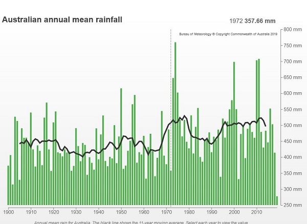 At 277.6 mm, 2019 rainfall was well below the previous record from 1902 which was 314.5 mm.