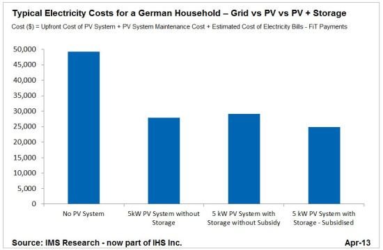 As costs of the new technology come down and grid electricity prices go up, future PV storage should be cost effective even without subsidies. The IMS press release is here.
