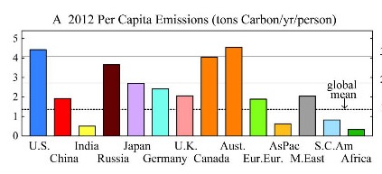 The figures for each country are misleading because it measures emissions on the basis of where it is emitted, not where products that of those emissions are used. For example, Chinese emissions might look bad because the steel used to make cars for exports is produced in China. The emissions resulting from the manufacture of cars sold to Europe are not counted in the EU stats.