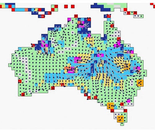 The CSIRO have developed a fascinating map showing species on the move due to climate change. I’ve done a screenshot here, but the animated version in the link is best: