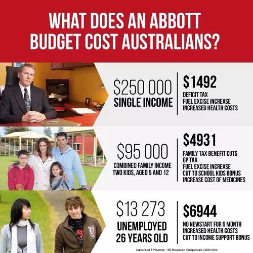 The budget hits 1.25 million low and middle income families with children on average by about $3000 a year in 2017-18 while it actually benefits upper middle and upper income families through removing the carbon price, according to modelling done by NATSEM at University of Canberra.