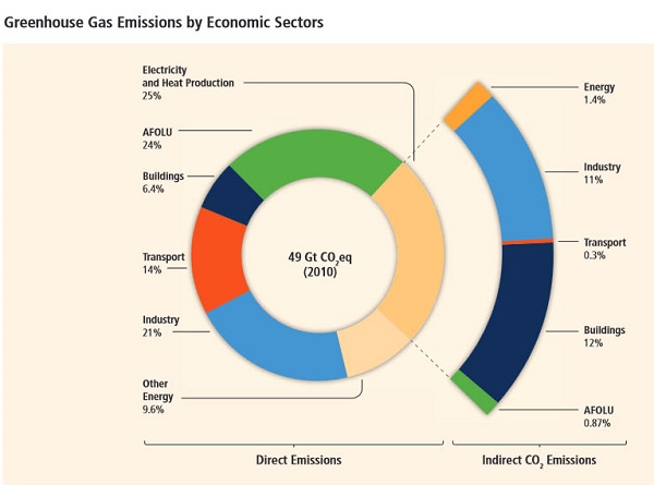 Our focus tends to be on electricity and motor vehicle transport, which amount to less than half of the problem. The green AFOLU segment represents agriculture, forestry and land use, a segment that is particularly difficult to deal with.