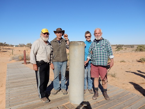 We chose a mix of tracks, ending up as you do at Poeppel Corner, where SA, NT and QLD meet. Here we have Len, me, Marion and Darral at Poeppel Corner:
