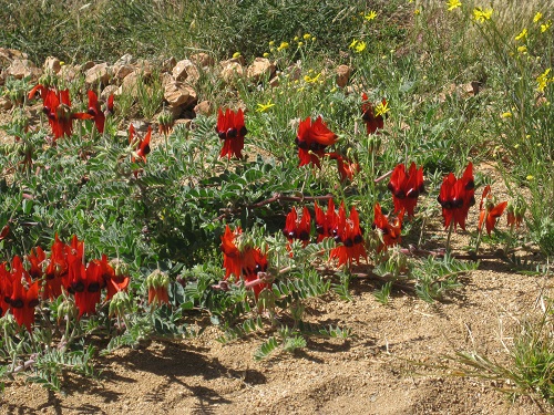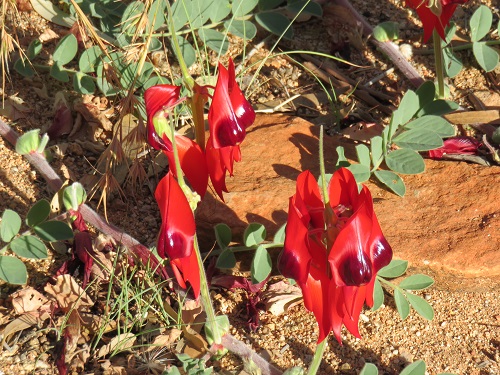 Earlier this year there had been periodic rain around Alice Springs and the western part of the desert, so wild flowers flourished. Here’s some desert peas from near the entrance to Desert Park in Alice (allocate a whole day if you’re visiting):