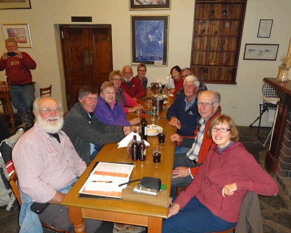 After five days in the desert we had a group celebration at the Birdsville Hotel. From the left we have Len, Don, Patsy, Irene, Darral, Marion, Betty, Eoin, Ian G-J, me and Margot.