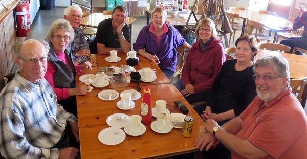 In the morning Darral and Marion had to rush off to an important meeting in Brisbane, but the rest of us met for a final hurrah at the Birdsville Bakery, a happening place. I don’t think I’ve ever tasted such good pies! From the left, me, Irene, Ian G-J, Don, Patsy, Margot, Betty and Eoin.