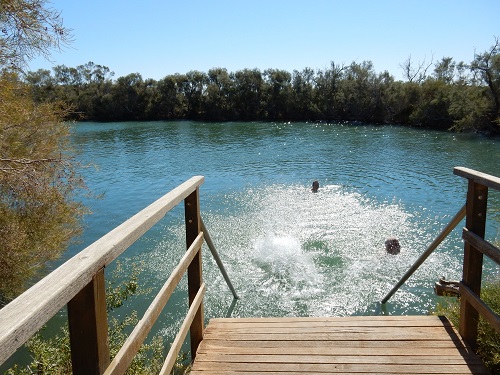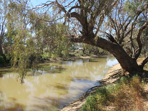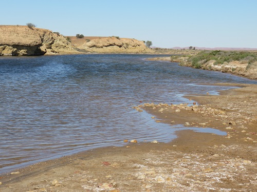Towards midday we came to Opossum Waterhole, an oblong body of water in the desert: