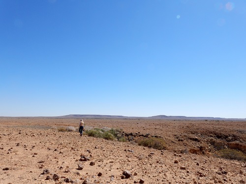It was a long day, our first day in the desert, with some severe landscapes and four bodies of water. Within the first hour we had our first technical hitch (see earlier post) where a tap on our largest water container turned itself on, watering the road with about 17 litres of water before we remedied the situation: