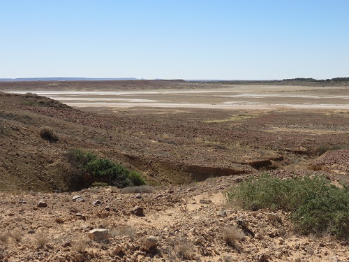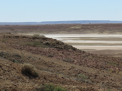 Then we traversed some harsh, forbidding gibber country with some salt flats, interspersed with softer country: