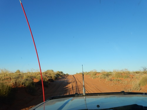 It’s true that their more modern suspensions handled the rough stuff better than ours. Perhaps they had the scent of Purni Bore in their nostrils. We were starting to see a few sandhills with wildflowers: