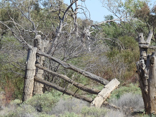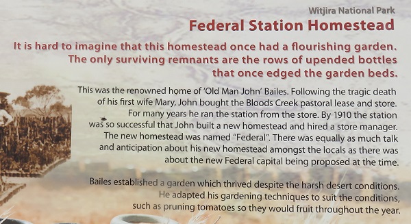 Half an hour down the road we came upon the remains of the stockyard and grounds associated with Federation Station. It was built in 1910 as part of the Bloods Creek pastoral lease and store, when things were going well and John Bailes put in a store manager. Bailes had a flourishing garden: