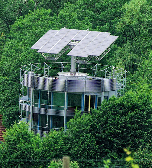 “Heliotrop”, University of Stuttgart’s “sunflower”-house which produces energy using a large photovoltaic sail on its roof: