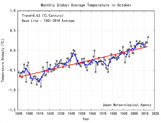 NASA has October as the warmest since 1880 along with 2005. The Japanese Meteorological Agency has it as the warmest ever: