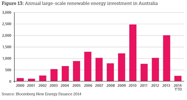 - Australia has substantial opportunities for renewable energy. A lack of clear federal policy has led to a drop in renewable energy investment.