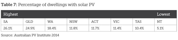 SA narrowly pips QLD in terms of percentage of dwellings with solar PV: