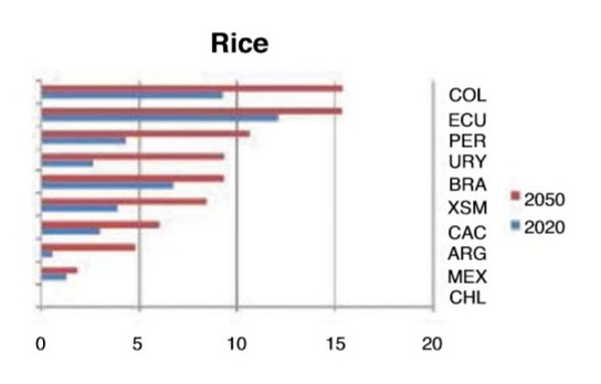 One of the concerns with warming is the change in crop yields. Here are some examples from Latin America and the Caribbean: