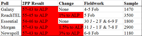 Elsewhere Adrian Beaumont tells us five polls released in the last week have Labor well in front, and Abbott’s approval rating continues to dive: