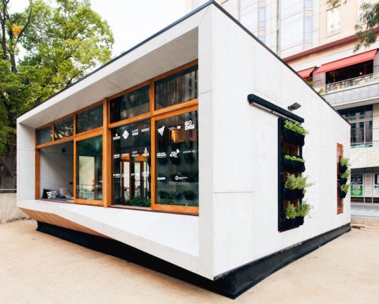Instead of relying on mechanical heating and cooling, the naturally ventilated home uses in-ground tubes to pull in cool air from the south side. The building is topped by a green roof for added insulation as well as a set of sliding vertical garden walls that shade and cool the building in the summer.