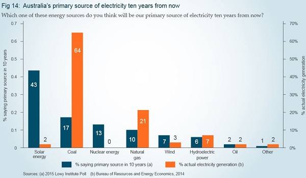 Here people were asked what would be our primary electricity source in 10 years time, charted against the current actual: