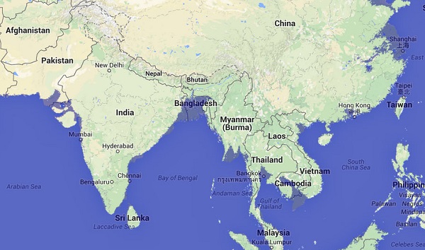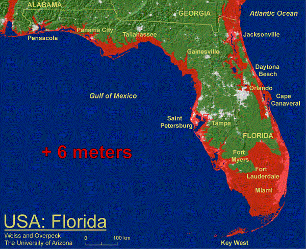 This image with 20m SLR, implied by current levels of CO2, shows Pakistan, Bangladesh, Myanmar, Vietnam, China/Hong Kong and China near Shanghai in some difficulty: