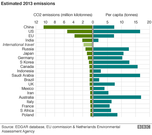This graph from EDGAR, via the BBC, puts our emissions into perspective: