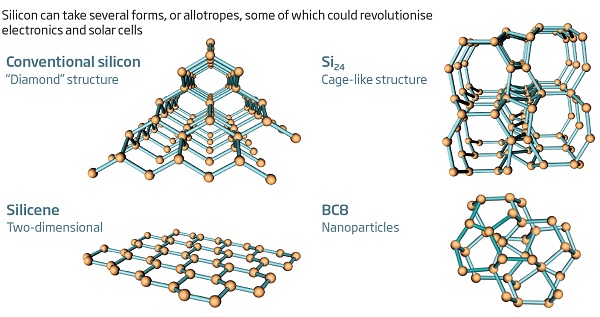 Two direct band-gap forms of silicon are BC8 and Si24. They may prove viable for both solar cells and chips, offering better performance with the safety, low cost and dependability of silicon.