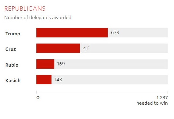 Trump will need to win 57% of the remaining delegates. California which may decide the issue is not until June 7.