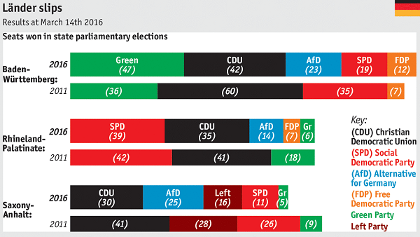 Krishnadev Calamur at The Atlantic confirms that view, but points out the the FDP as well as the AfD increased its votes in all three states with an anti-refugee stance.