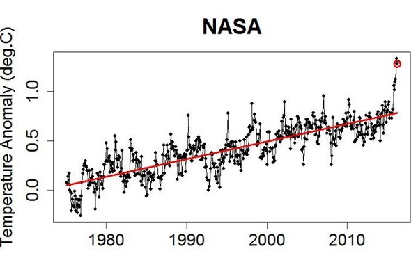 March temperatures were the hottest March ever and second largest monthly anomaly. Here’s NASA via Open Mind:
