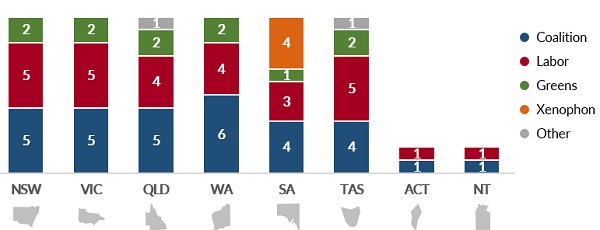 On the cross-bench, the Greens would have gained one additional seat, bringing their total to 11 seats. The Nick Xenophon team would have quadrupled their current representation, picking up a total of 4 seats (one third of the SA seats). MetaPoll predicts that Jacqui Lambie (TAS) and Glenn Lazarus (QLD) will be the only other crossbenchers to retain their seats
