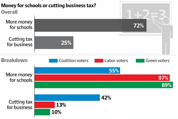 Finally, Tingle reports an aspect of the poll that didn’t appear in the paper. Voters would vastly prefer money for schools over tax cuts for business: