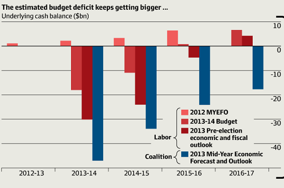 The next image shows the budget balance over the years. It’s from MYEFO, the mid-year revue last December: