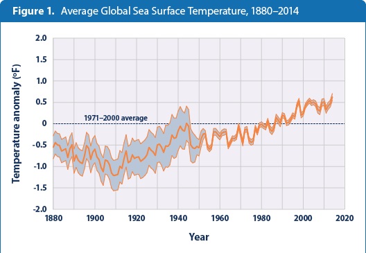 Here’s the global sea surface temperature from the Environment Protection Agency site linked above: