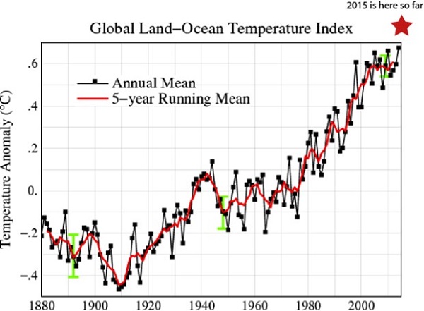 In the real world it seems that a step change might be happening, as alluded to in this post of June 2015, which carries a graph showing a five-year running mean:
