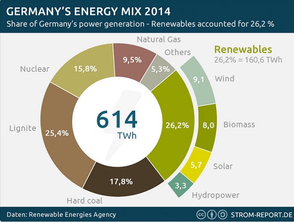 Impressive, and each country will have its own story. If you look at Germany, this was the energy mix in relation to electricity in 2014: