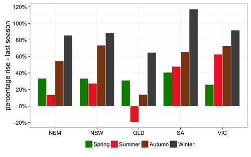 This graph shows the winter prices in SA 115% higher than in the previous winter: