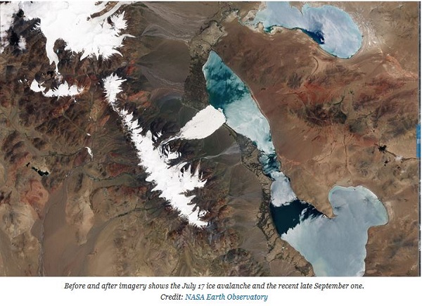 “Even one of these gigantic glacier avalanches is very unusual,” Andreas Kääb, a glaciologist at the University of Oslo, told NASA Earth Observatory, which published a new set of images. “Two of them within close geographical and temporal vicinity is, to our best knowledge, unprecedented.”