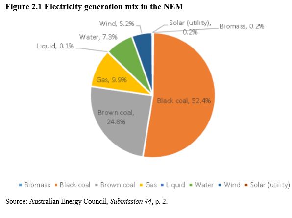 Here, from the senate inquiry interim report, is the enrgy mix within the NEM: