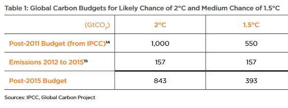 This table updates the 2011 IPCC carbon budgets to 2015 in order to account for emissions over the four intervening years: