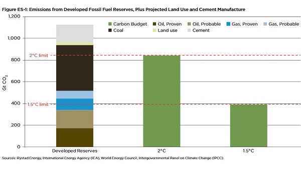 - A new study released by Oil Change International, in partnership with 14 organizations from around the world, scientifically grounds the growing movement to keep carbon in the ground by revealing the need to stop all new fossil fuel infrastructure and industry expansion. It focuses on the potential carbon emissions from developed reserves – where the wells are already drilled, the pits dug, and the pipelines, processing facilities, railways, and export terminals constructed.