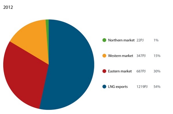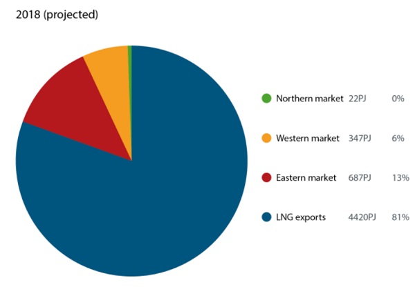 For legibility I’ve split their pie chart of 2012 and 2018 Australian gas market into two images: