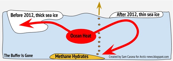 For example, take this diagram which shows the mechanism whereby heat attacks the clathrates:
