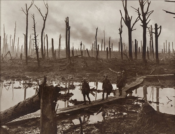 The featured image at the head of the post is a photo by Frank Hurley of Australian gunners on a duckboard track in Château Wood near Hooge, 29 October 1917 from Wikipedia: