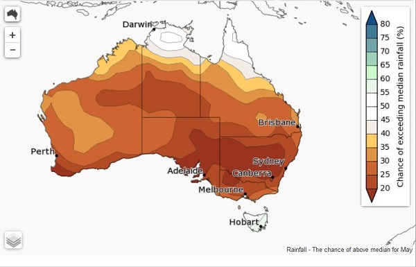 The Bureau of Meteorology (BOM) has come out with their monthly and seasonal climate outlook for May-June. This is May rain:
