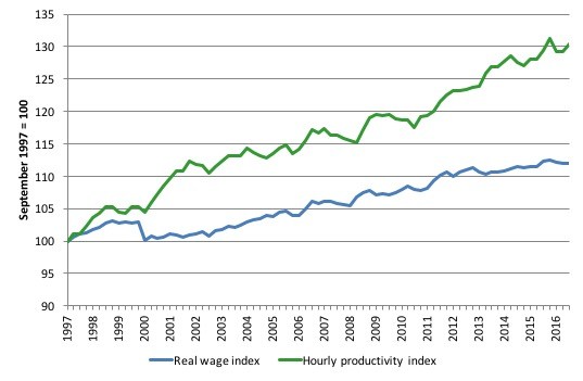 Bill Mitchell has a post Real wages now falling in Australia – failing economy and failed policy. This graph shows how the capitalists are winning: