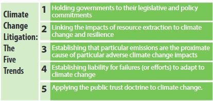 • Citizens and non-governmental organizations are suing to hold their governments accountable for climate-related commitments. In many instances, the arguments made to challenge government actions or inaction include reference to constitutional and statutory provisions not specific to climate change.