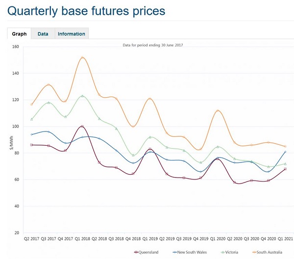 Queensland provides the most decentralised network of the eastern states, is subject to frequent and severe weather disruption, yet somehow prices have been cheaper here for the past few years, apart from one short period, are cheaper now and are forecast to remain so into the future.