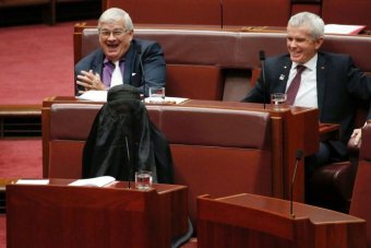 Pauline Hanson wore a burqa into the Senate and then asked when the government was going to ban the thing, in the interests of security. Most think it was a cheap political stunt that misfired. Brandis got a standing ovation from Labor, the Greens and the crossbench. His own side were seen clapping also if you looked closely.