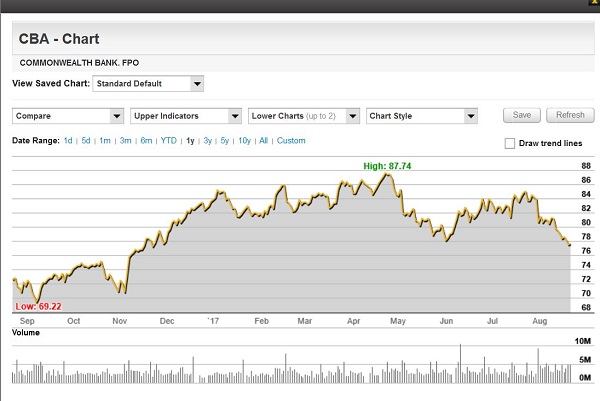Maurice Blackburn has made much of the fact that there are 800,000 CBA shareholders, and the price fell from an intraday high $84.69 on Thursday 3 August, when AUSTRAC launched proceedings in the Federal Court to a close of $80.11 on Monday 7 August, a loss of $4.58 which translates into $7.8 billion in the value of the bank.