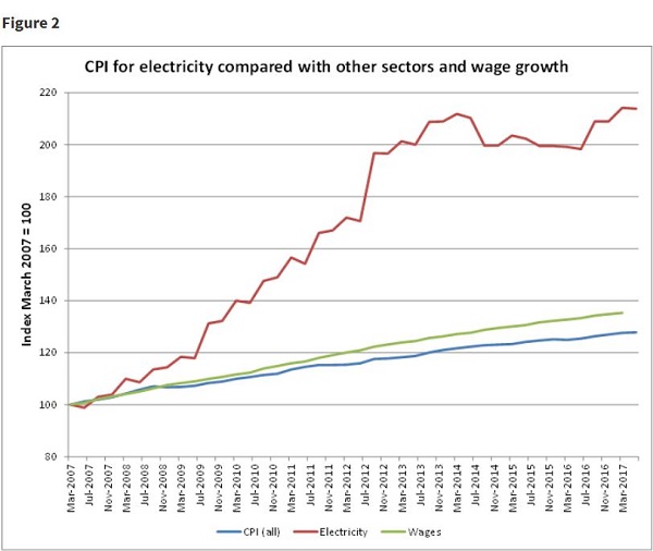 Rod Sims’ speech Shining a light: Australia’s gas and electricity affordability problem to the National Press Club certainly established that Australia has a gas and electricity affordability problem which is hurting many consumers and businesses. Electricity prices have more than doubled since 2009 as shown in this graph: